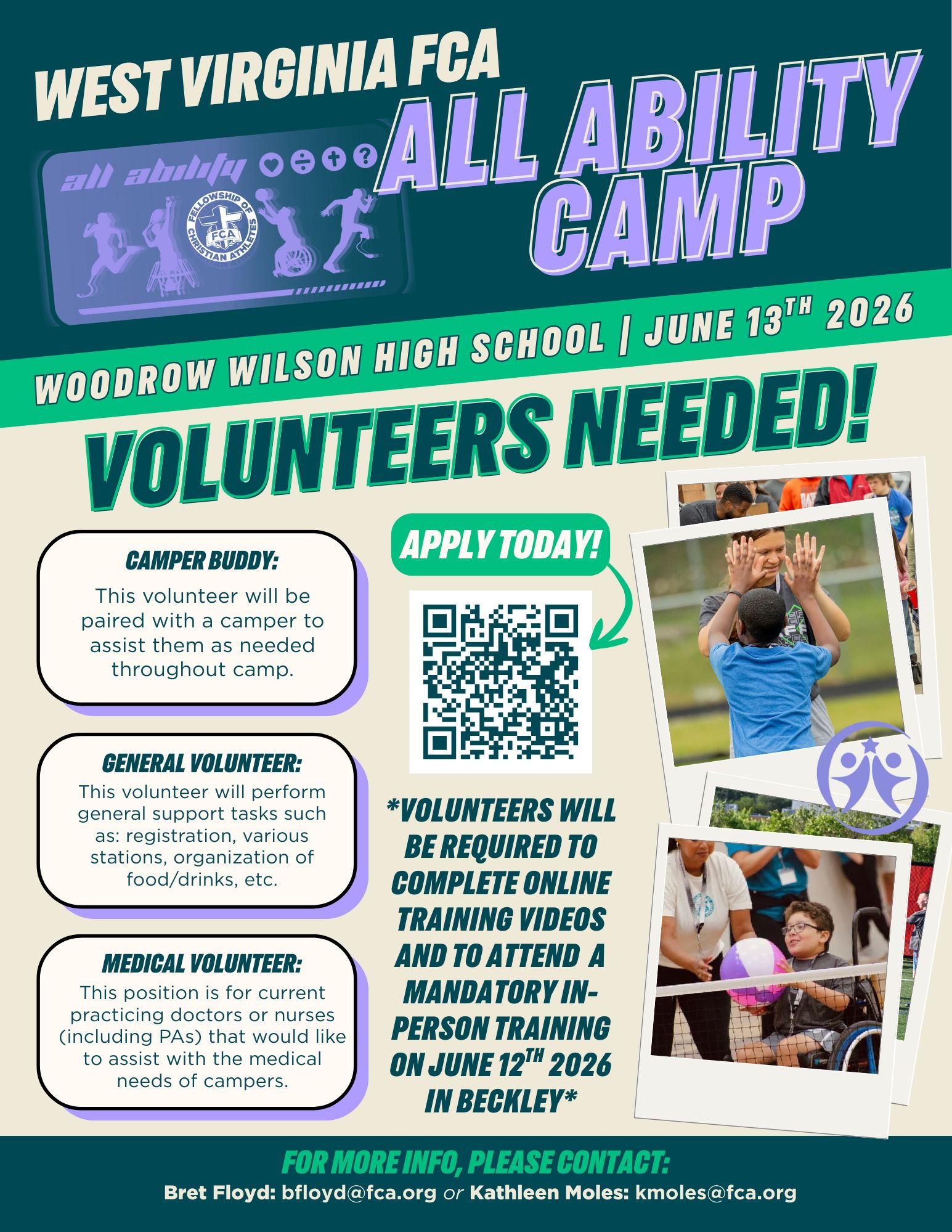 *VOLUNTEERS WILL BE REQUIRED TO COMPLETE ONLINE TRAINING VIDEOS AND TO ATTEND A MANDATORY IN-PERSON TRAINING ON JUNE 12th 2026 BECKLEY*
